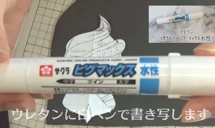 黒いウレタンには白いペン、白いウレタンには鉛筆などでもOK