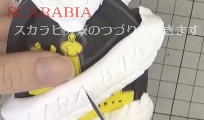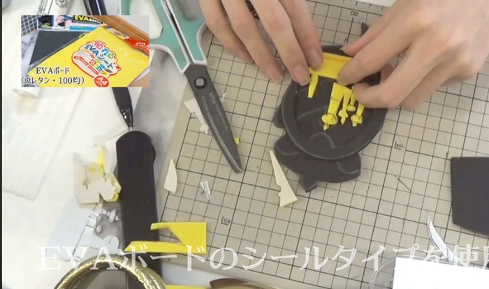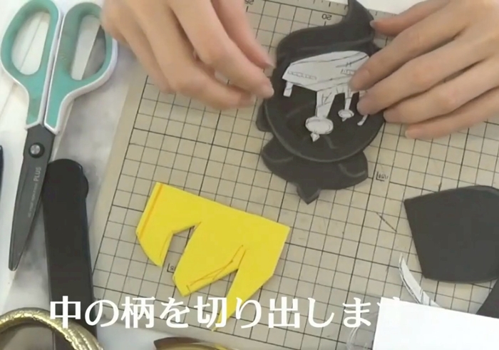 中の柄の型紙を切りだし、薄めのウレタンを切り出します