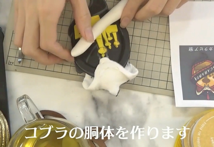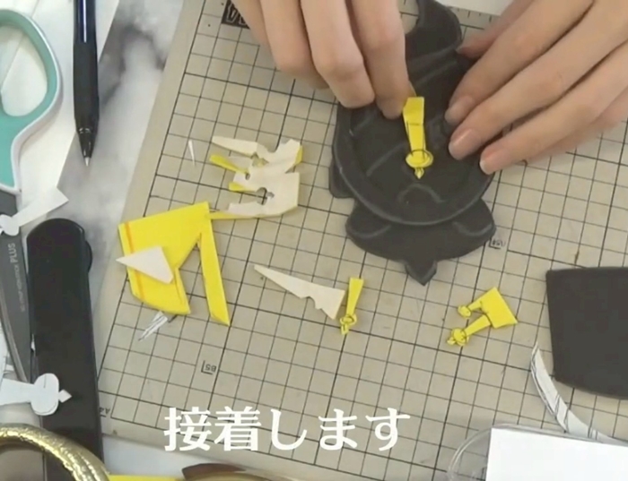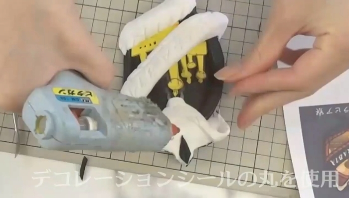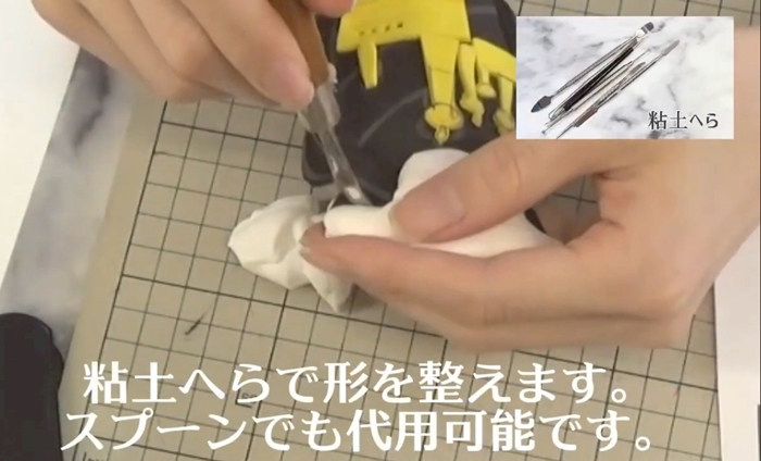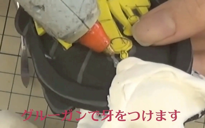 土台の粘土が乾燥してから、羽パーツを接着し、