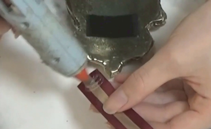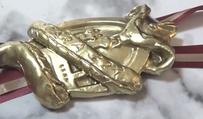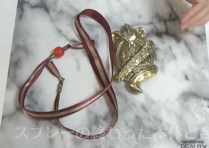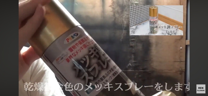 金メッキのラッカースプレーを吹き付け、乾燥させます