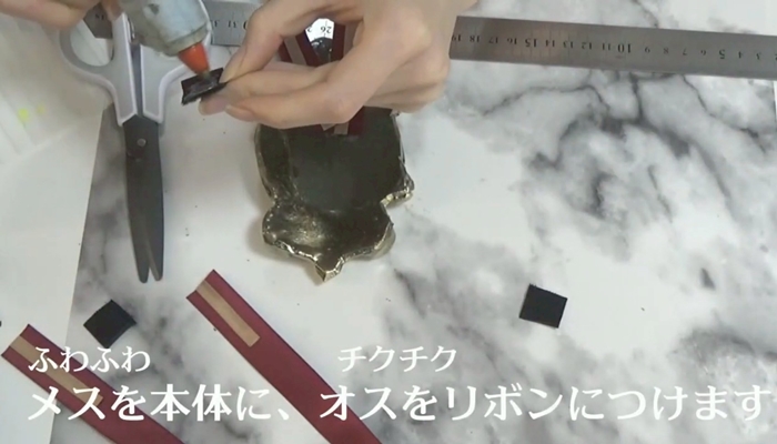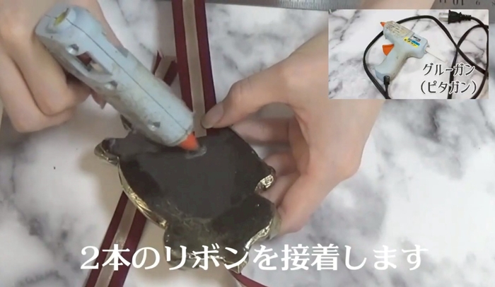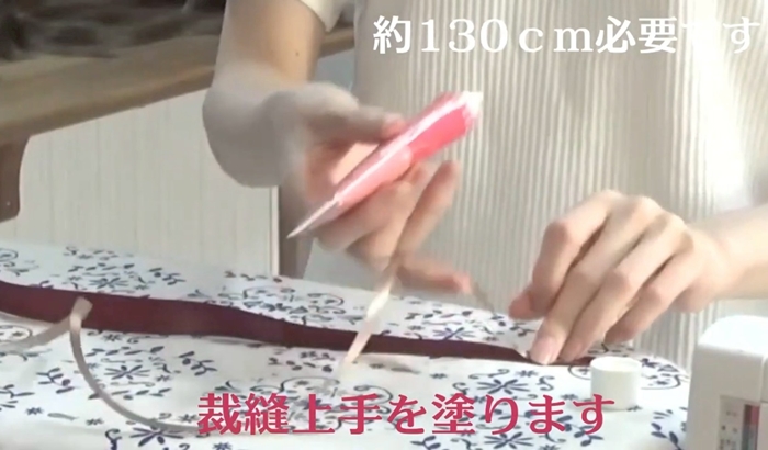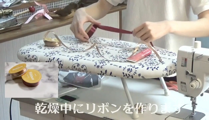 リボンの端はほつれやすいので、ほつれ止め液を塗るか、