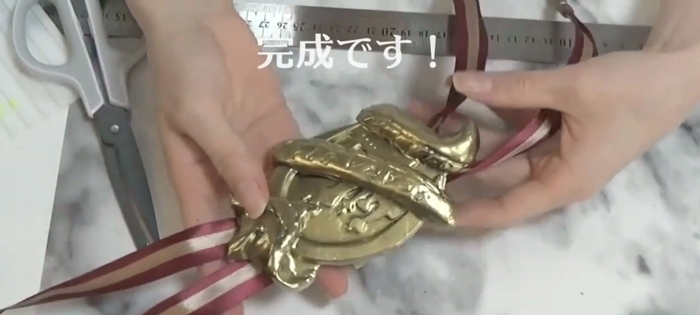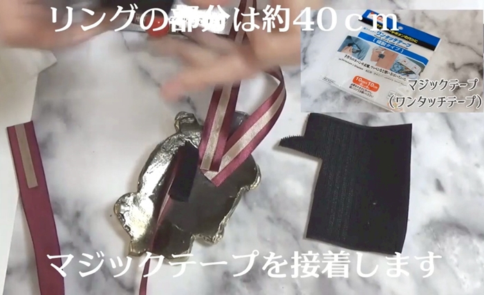 通して引き上げる場合は、リボンを寮章に直接つければOK