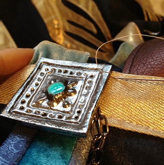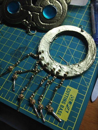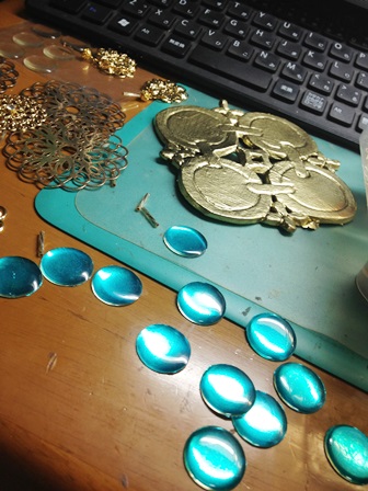 ウレタンで製作した金色のリングに、ビーズで製作したパーツを固定。 |