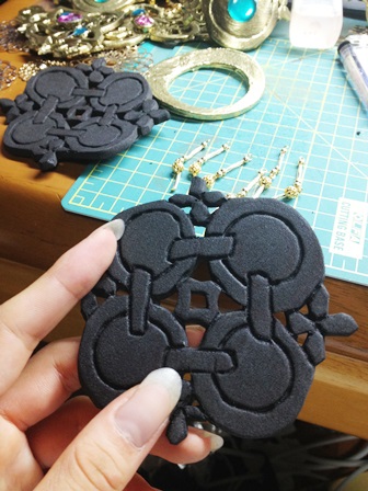例:貂蝉・裾の銀パーツは両面文様のウレタン製 |