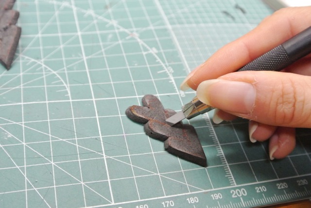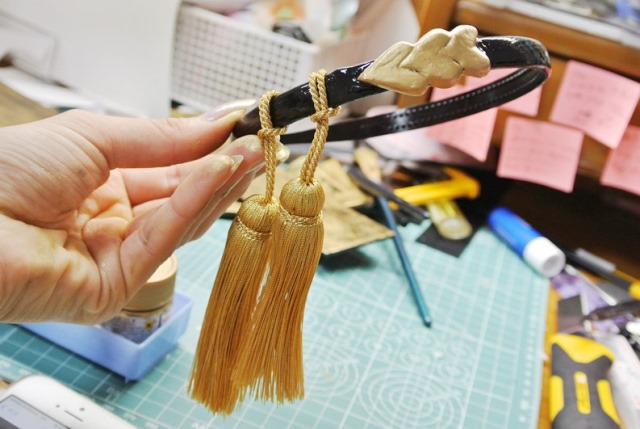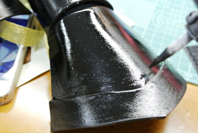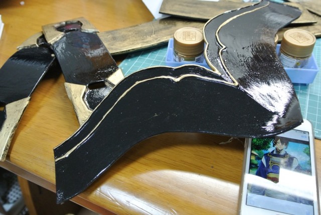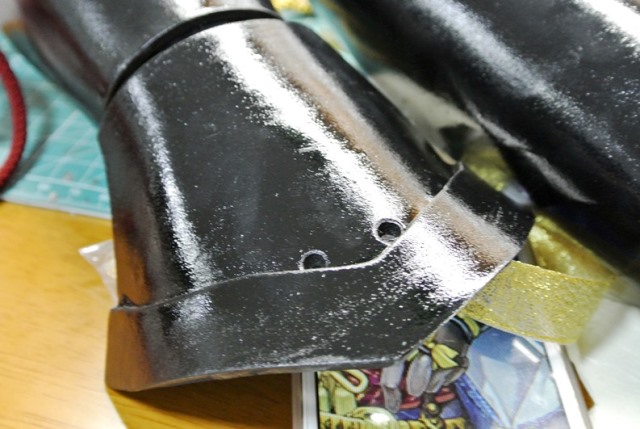 | 下地にボンドを塗り、黒ラッカー塗装 |