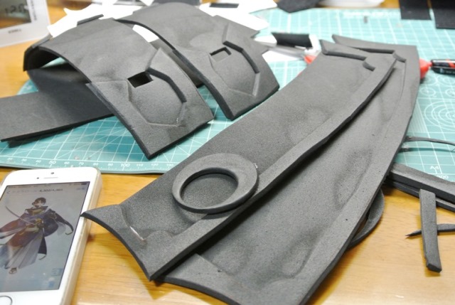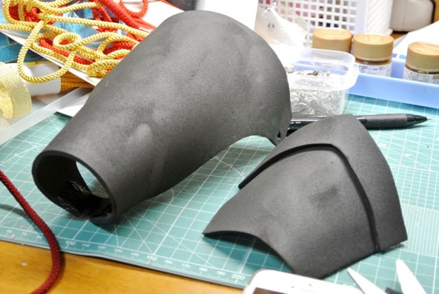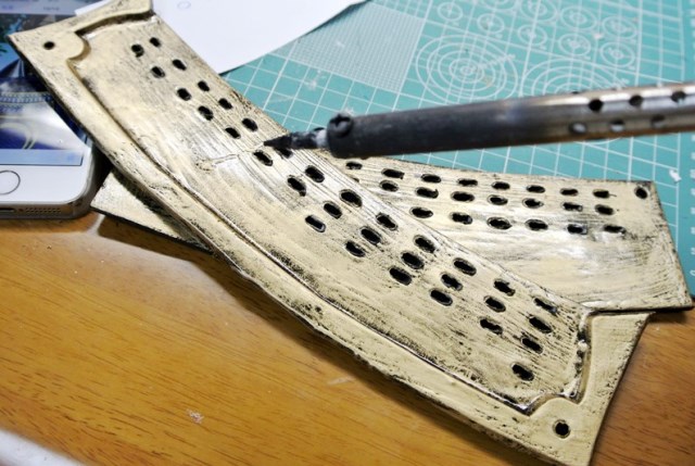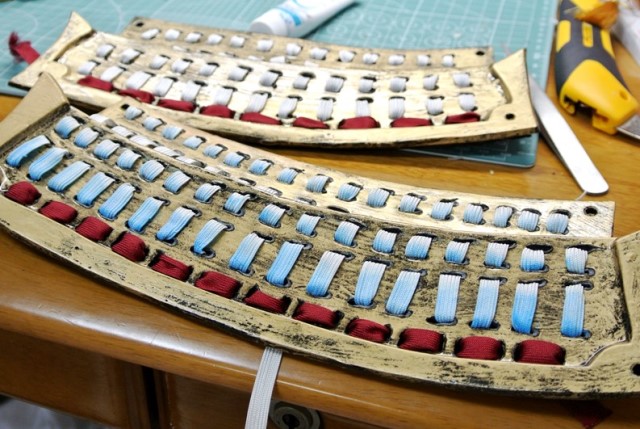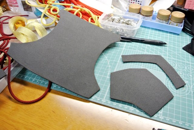 | 腰と首鎧。ウレタンで首鎧と同様に作り、はんだごてで穴あけ |