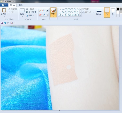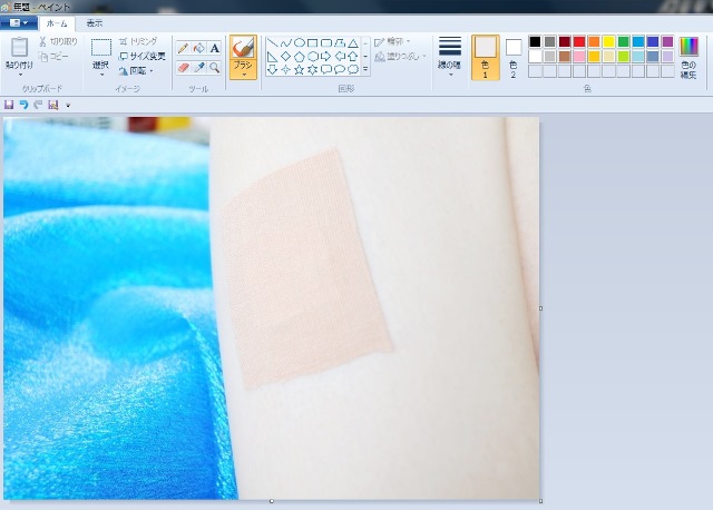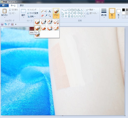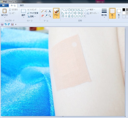 ?先ほどの太もも。胸イメージをレタッチします。 わかりやすいようにペイントを使用。操作もマウスです。 ![]() |