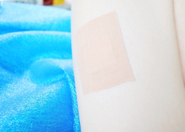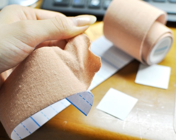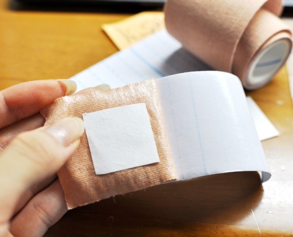 ?そのまま貼ると薄い為、粘着面に紙を貼ります。 絆創膏のような状態に。紙はコピー用紙等で可。 |