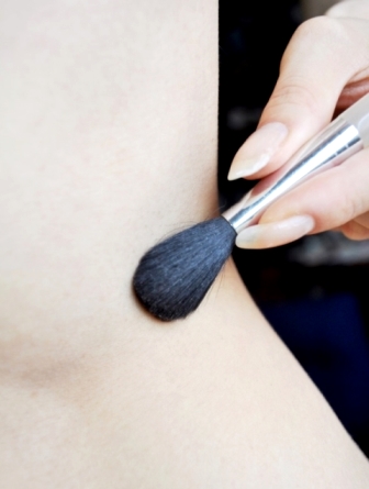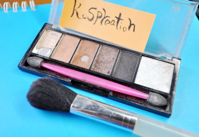 ?男性らしい体にするため、ボディにも化粧をします。 画像は100均グッズ。ダイソーのアイシャドウと、セリアのブラシ。 |