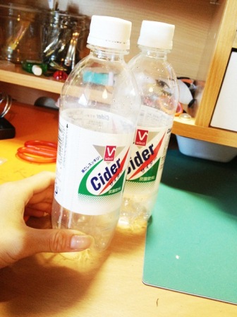 2日かけて飲み干したサイダー 頭頂部をガスタンクのトップに代用します。 |