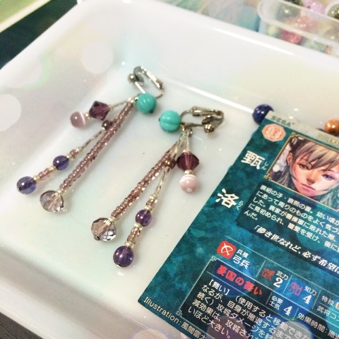 耳飾りもビーズで製作。 |