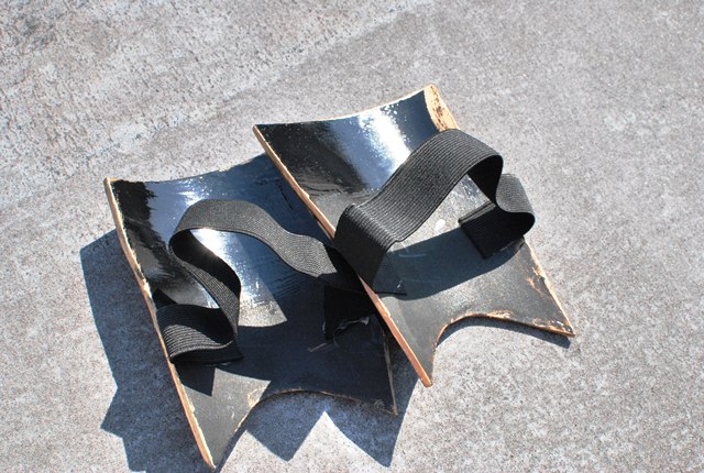 かかと側は衣装の丈を伸ばして見えない作りにしています。